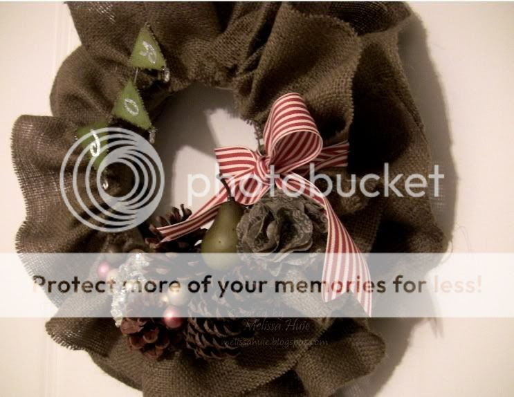 I used a few things from my stash, and some wreath adornments found at the local craft store. The pinecones are those ones that smell like cinnamon... yum!